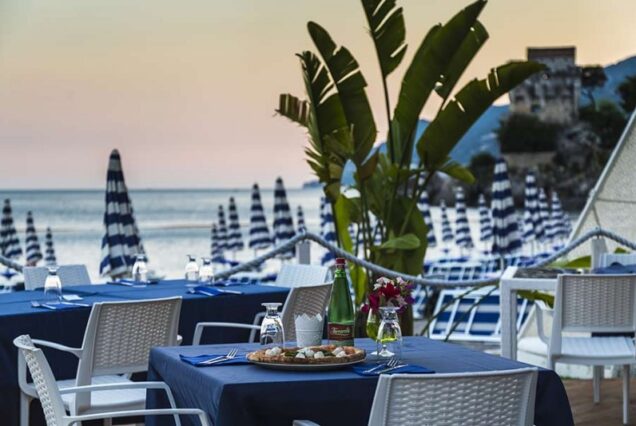 Un ascensore panoramico collega l’hotel alla spiaggia privata attrezzata, dove gli ospiti possono godersi il sole e il mare in totale comfort. In estate, la spiaggia si trasforma anche in location esclusiva per eventi e serate eleganti.