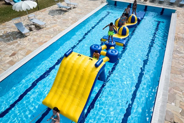 Una o più piscine esterne per adulti e bambini con zone relax.